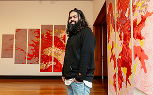 These artists were engaged by Aboriginal Art Co and have been supported in their Safe Space Residency Program in previous years, providing culturally safe and personalised career support. Delivered by First Nations arts professionals for First Nations artists. Want to see more of the artists’ upcoming work? Be sure to head over to Aboriginal Art Co.