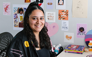 Her vibrant digital illustrations are inspired by pop culture, cartoons, and magic-realist landscapes. With a love for bold black outlines, dynamic colour palettes, and cultural iconography, Kimberly’s work aims to inspire and unite audiences of all ages.