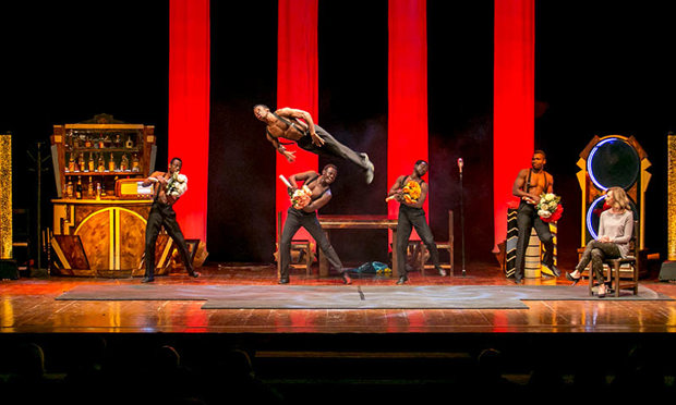 In a Cabaret scenography with the vintage charm of the “Cotton Club”, five artists of the famous Nairobi Sarukazi school link jumps, pyramids and the most unbelievable acrobatics one after the other in scenes paying tribute to John Landis’ Blues Brothers. An American-inspired show with an electrifying atmosphere, enhanced by an irresistible musical score. Masterful!